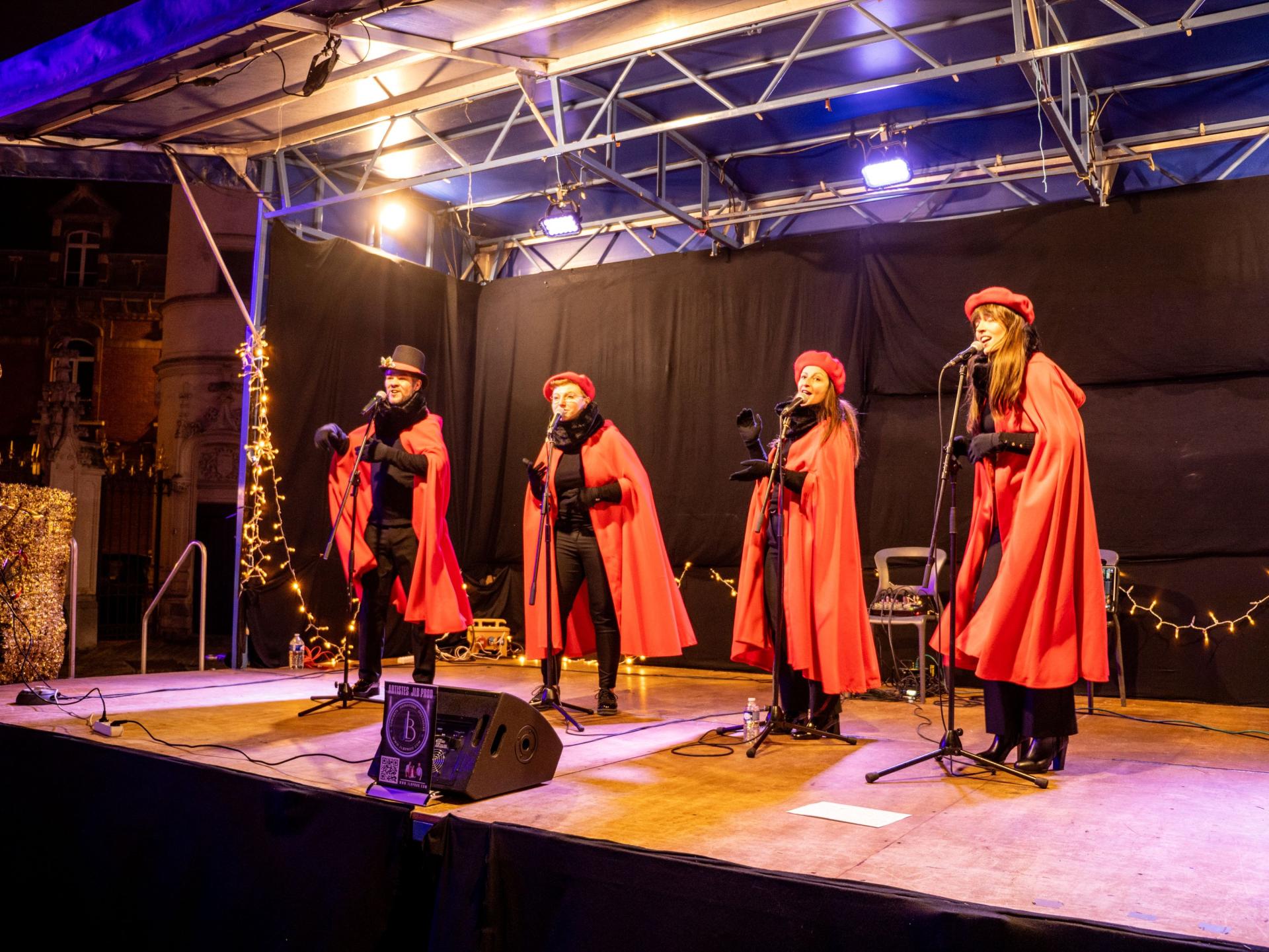 Sur la scène du marché de Noël, dans la cour de l’Hôtel de Ville, Winter Harmonie vous invite à un voyage musical qui émerveille petits et grands. Un concert tout public, à savourer comme un conte d’hiver en musique.